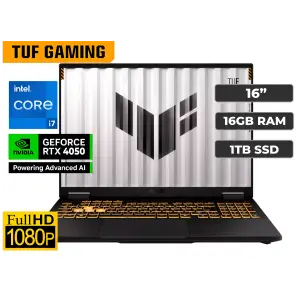 PORTATIL ASUS TUF F16 C I7-13620H 2.4 GHz - 1 TB SSD - 16GB - RTX4050 6GB - 16FHD IPS -144Hz - MECHA GREY + MOCHILA + MOUSE GAMING