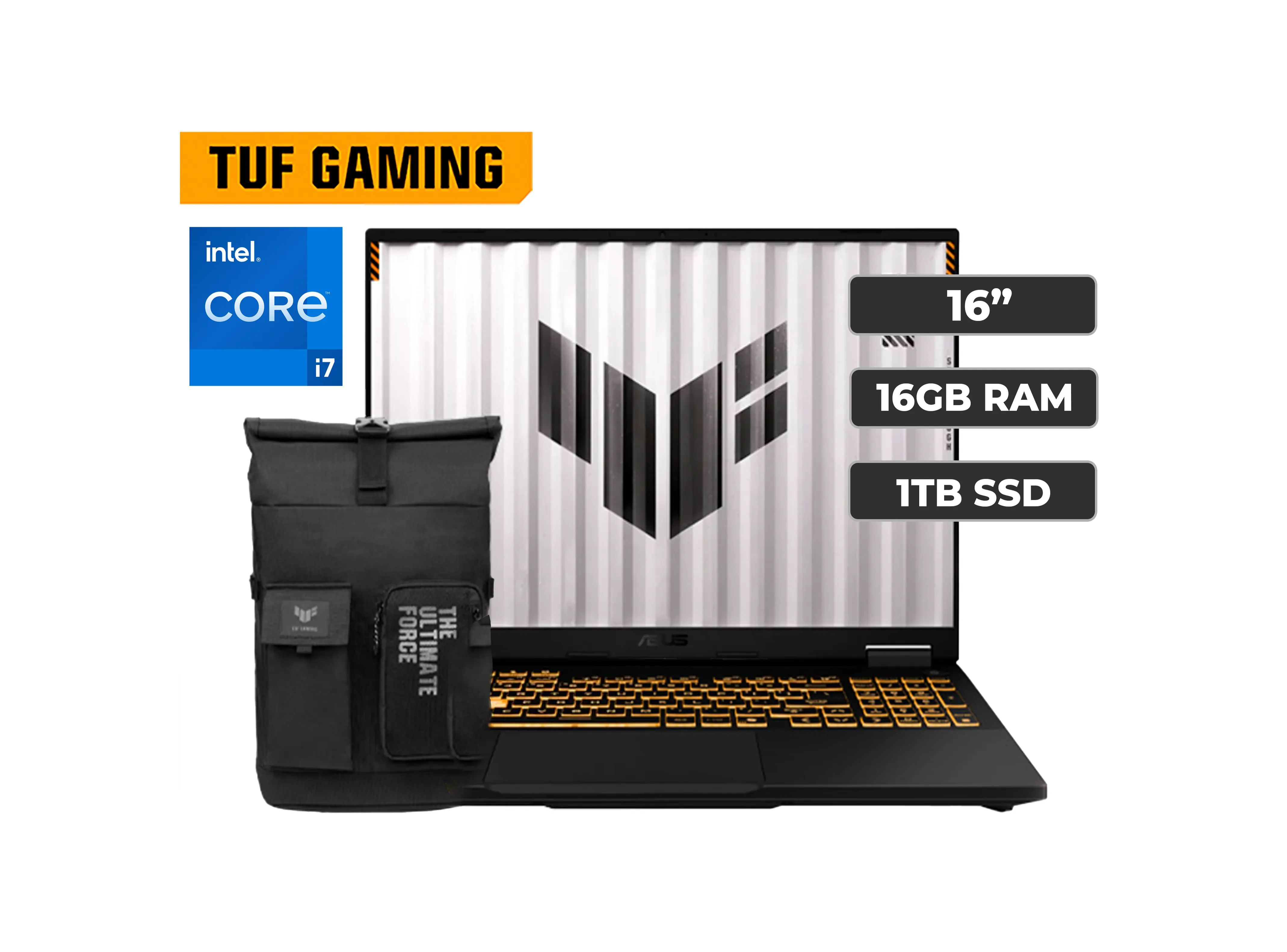 PORTATIL ASUS TUF F16 C I7-13620H 2.4 GHz - 1 TB SSD - 16GB - RTX4050 6GB - 16FHD IPS -144Hz - MECHA GREY + MOCHILA + MOUSE GAMING